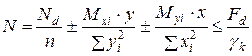 где μ – коэффициент, учитывающий неравномерность нагрузки на сваи в ростверке при действии момента и принимается в зависимости от эксцентриситета «е» равнодействующей относительно оси, проходящей через ростверк, равным от 1,0-1,3;