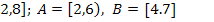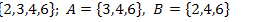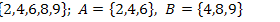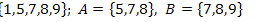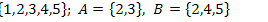 Пусть А = ►По определению операций над множествами получим: А В\А = {2};A Пример 2. Найти все подмножества множества А ={1, 4, 7}. ►Множество всех подмножеств множества А обозначается