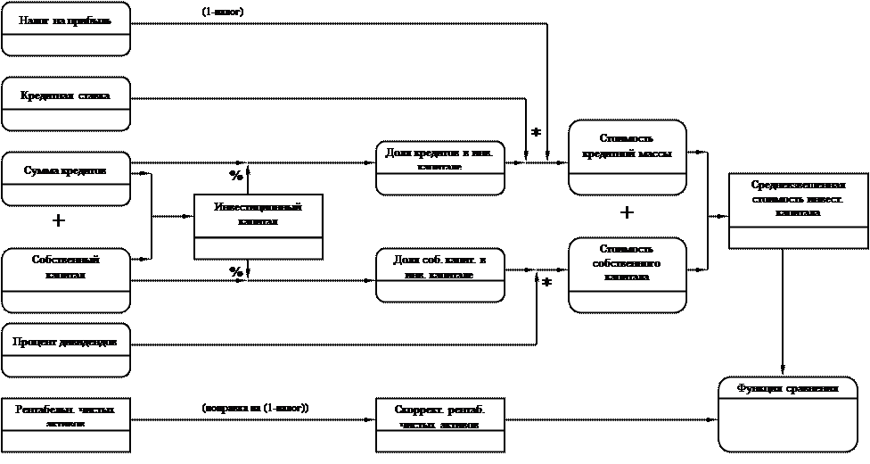 L +E L +E L+E где: r - кредитная ставка банка Т - ставка налога на прибыль L - сумма кредитов банка Е - собственный капитал d - процент дивидендов