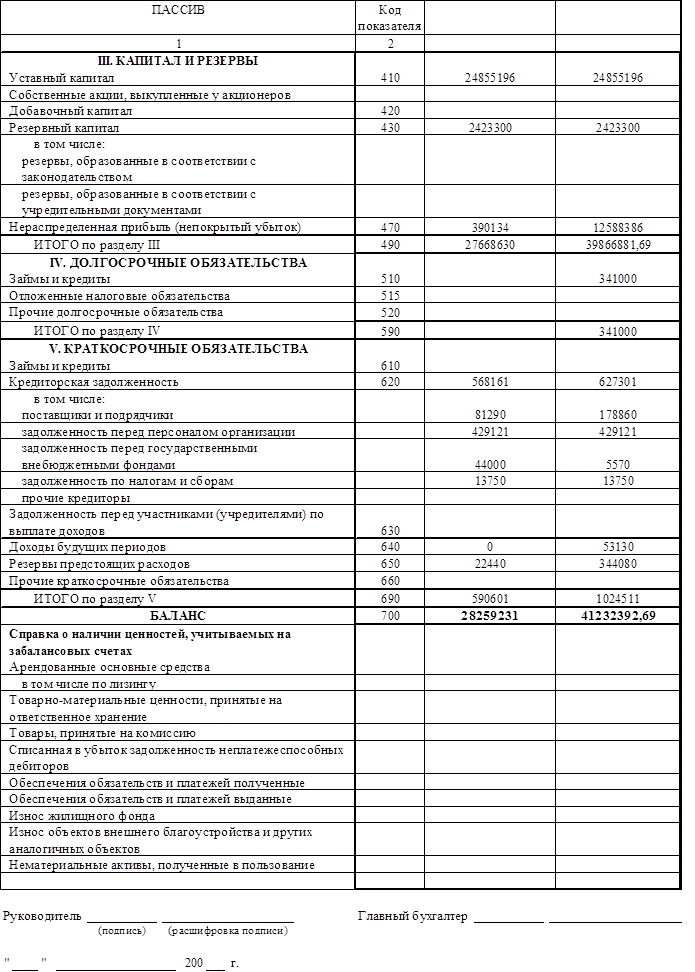 Остаточная стоимость плоскошлифовального станка находится в виде разницы первоначальной стоимости станка и суммы амортизации на день выбытия: 12100 – 11220 = 880. Результат от ликвидации плоскошлифовального станка путем вычитания из кредитового оборота по счету 91 суммы дебетовых оборотов по счету 91 (по операциям связанных с ликвидацией основного средства): 770-880-319-3= 432. Остаточная стоимость промышленных образцов и товарных знаков находится в виде разницы первоначальной стоимости нематериальных активов и суммы накопленной амортизации: 64350 – 63800 = 550. Финансовый результат от прочих операций находится в виде разницы кредитового оборота по 91 (безвозмездное принятие основного средства) счету и дебетовому обороту счета 91 (выбытие нематериального актива): 18920–550= 18370. Сумма отклонений в стоимости приобретенных материалов находится в виде разницы между суммой дебетовых оборотов 15 счета и кредитовым оборотом 15 счета: 711150 + 73920 – 666050 = 119020. Отклонения, относящиеся к израсходованным материалам, находятся в виде отношения значений суммы отпущенных со склада материалов к сумме значений материалов принятых на склад по учетным ценам, затем полученное выражение умножается на сумму отклонений приобретенных материалов: (288090+65285+3325+4598)/666050*119020=69923,11. Отчисления на соцстрахование составляют 4 % от заработной платы рабочего. Например, зарплата рабочих основных цехов * 4%: 1608200 * 4 % = 64328. Отчисления в резерв отпусков основных рабочих составляют 20 % от заработной платы основных рабочих: 1608200 * 20 % = 321640. Удержания из заработной платы в виде НДФЛ составляют 13% от начисленной заработной платы рабочих: (1608200+11000+157300+15730+352000+211450+38430+319)*13%=324146. Расходы на основновное производство общепроизводственные: списываются путем сложения дебетовых оборотов по 25 счету: 65285+157300+15730+6292+692,2=321182. общехозяйственные: списываются путем сложения дебетовых оборотов по 26 счету: 28+3109+33325+4598+352000+14080=726212. вспомогательное производство : списываются в виде разницы между суммой дебетовых оборотов по 23 счету и кредитовым оборотом по счету 23: -38610+10000+440=75790. Сумма оприходованной на склад готовой продукции по фактической себестоимости находится путем сложения дебетовых оборотов по 20 счету:288090+ 69923,1+1608200+211450+64328+8458+321640+321182+726212+75790=3888686 Результат от реализации продукции находится путем вычитания из кредитового оборота по 90 счету дебетовых оборотов по счету 90. 17105000+3888686+2600+1010000=12180314. Перечисленные с расчетного счета отчисления на социальное страхование находятся в виде суммы кредитовых оборотов по 69 счету:3+64+328+440+6292+ 629,2+14080+8458=98180,2. Сумма для выдачи заработная платы и пособий по временной нетрудоспособности находится в виде разницы суммы кредитовых оборотов по 70 счету и дебетовых оборотов по счету 70: 319+1608200+110000+157300+15730+ 352000+211450+38430-324146-19800-9570=2139913. Шахматно-оборотная ведомость за ноябрь 2003 года. Оборотно-сальдовая ведомость за ноябрь 2003 года. Бухгалтерский баланс на 1 декабря 2003 года. В последнее время в имуществе хозяйственных организаций неуклонно возрастает доля нематериальных (неосязаемых) активов. Это обусловлено активной инвестиционной деятельностью, обострением конкурентной борьбы. Данная курсовая работа рассматривает круг вопросов, связанных с организацией ведения учета нематериальных активов. В результате проделанной работы можно сделать следующие выводы: для учета нематериальных активов вследс