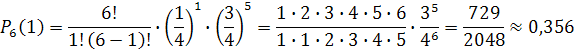 целое число , Применим формулу Бернулли. Вероятность попадания одного костюма 48 размера в серию из 6 костюмов равна: