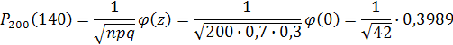 =1 А) Так как число испытаний велико n =200, и в срок необходимо выполнить ровно k =140 заказов, то применяем локальную теорему Лапласа. Находим z по формуле: