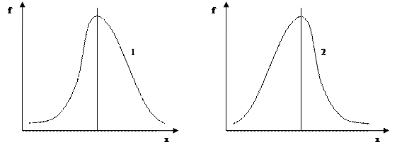 Рисунок 1 – Распределение: 1 – с правосторонней асимметрией; 2 – с левосторонней асимметрией. Другой показатель, предложенный шведским математиком Линдбергом, рассчитывают по формуле: