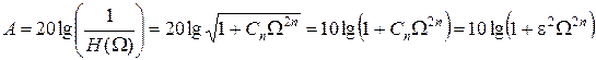 где ε – коэффициент неравномерности в полосе пропускания. Из формул (5.1.4) выходит, что