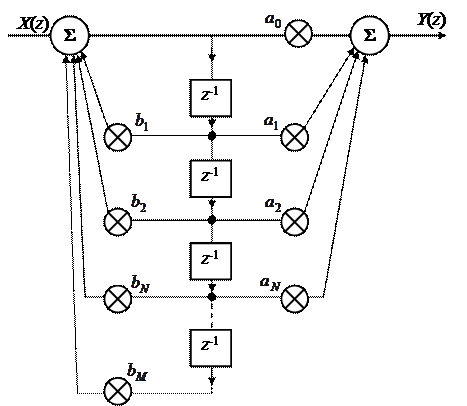 При канонической реали- зации по передаточной функции Обобщенная структурная схема ЦФ непосредственной реализации изображена на рисунке (5.2):