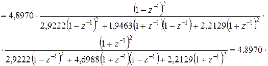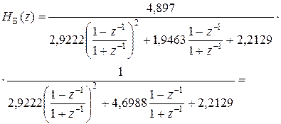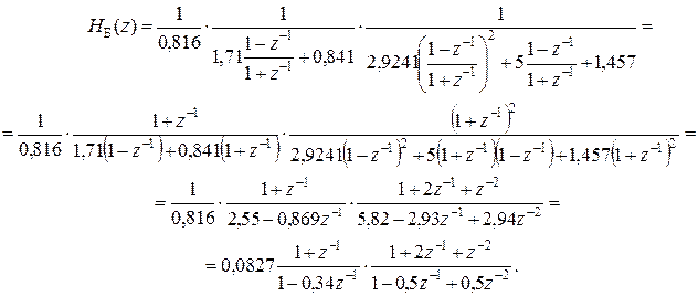 Далее к каждому сомножителю применяем билинейное z-преобразование аналогично фильтру Баттерворта: