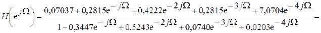 Окончательный вариант передаточной функции цифрового фильтра подлежащий реализации имеет вид: