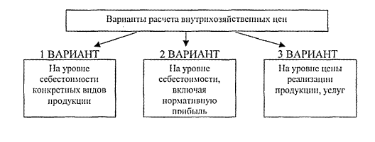 Рисунок 2 - Варианты формирования расчетных цен При первом варианте внутрихозяйственные цены складываются из материально-денежных затрат, необходимых для производства продукции и услуг, которые должны выполнить подразделения. Они предусматривают передачу издержек одного подразделения в другое. При втором варианте кроме себестоимости в расчетную цену включается нормативная прибыль. Такие цены обеспечивают возмещение не только производственных затрат, но и воспроизводство рабочей силы, основных фондов. Обеспечение равных экономических возможностей подразделений по поддержанию на должном уровне личных доходов членов коллектива и восстановлению основных средств производства достигается через экономически обоснованный механизм включения нормативной прибыли в цену каждого вида продукции (услуг). В практике сельскохозяйственного производства применяется несколько вариантов включения нормативной прибыли в цену: 1. пропорционально всем производственным затратам в нормативной себестоимости продукции, услуг; 2. пропорционально цене труда (фонда оплаты труда) в нормативной себестоимости соответствующего вида продукции, услуг; 3. пропорционально цене труда и амортизации основных фондов в себестоимости продукции, услуг. Первый вариант может быть использован в тех случаях, когда партнеры производят такие виды продукции (услуг), в себестоимости которых цена труда и амортизации основных средств занимают примерно равный удельный вес по всем видам продукции (услуг). При этом к расчетно-нормативной (прогнозной в условиях инфляции) себестоимости добавляется установленный, единый для всех видов продукции (услуг), процент нормативной прибыли. Второй вариант приемлем в тех случаях, когда партнеры производят продукцию (услуги), в себестоимости которых (на рубль затрат) различный удельный вес цены труда (фонда оплаты), но одинаковый процент амортизации основных фондов (разная трудоемкость, но одинаковая фондоемкость производства). Третий вариант универсальный, имеет наибольшие перспективы широкого применения. Но особенно необходим для использования в тех случаях, когда партнеры производят продукцию (оказывают услуги), в себестоимости которых и цена труда, и амортизация занимают различный удельный вес по отдельным видам продукции (услуг). Пример расчета цены по второму варианту: расчетная цена определяется на базе нормативной себестоимости соответствующих видов продукции, включающей нормативную прибыль. Нормативная себестоимость каждого вида продукции (услуг) рассчитывается исходя из реальной технологии производства, параметров качества основных средств и других ресурсов, используемых в производстве. В основу расчета себестоимости каждого вида продукции (услуг) берется технологическая карта (калькуляция) производства. При этом к сумме прямых и накладных затрат на производство единицы каждого вида продукции (услуг) добавляется нормативная прибыль на уровне средней достигнутой рентабельности производства по хозяйству. С целью создания равных экономических условий деятельности коллективов, занятых производством различных видов продукции (услуг) нормативная прибыль включается в цену пропорционально удельному весу фонда заработной платы (оплаты труда) в себестоимости соответствующих видов продукции (услуг). Ав