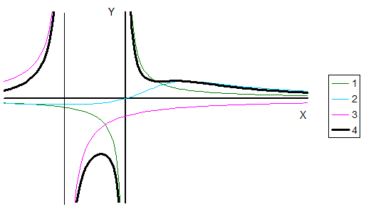 Очевидно, что график дробно-рациональной функции можно получить как сумму графиков элементарных дробей.