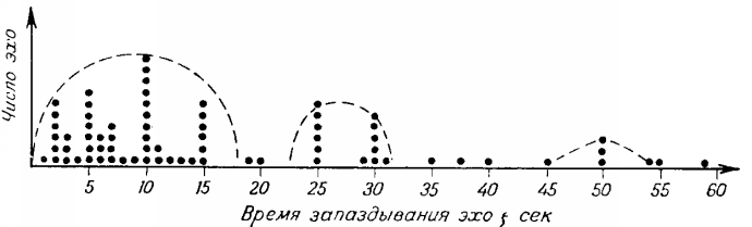 Поскольку звуковые волны в воздушной среде обладают постоянной скоростью распространения (около 330 метров в секунду), время, необходимое звуку для возвращения может служить источником данных об удалении предмета. Чтобы определить расстояние до предмета в метрах, необходимо засечь время в секундах до возвращения эха, разделить его на два (звук проходит расстояние до предмета и обратно) и умножить на 330 — получится примерное расстояние в метрах. На этом принципе основана эхолокация , применяемая, в основном, для промеров глубины водоемов (в этом случае нео бходимо учитывать, что в воде звуковые волны распространяются быстрее, чем в воздухе). Но неверно определять расстояние до молнии по разнице во времени между молнией и громом. Ударная волна движется быстрее скорости звука. Эхолокация может быть основана на отражении сигналов различной частоты — радиоволн, ультразвука и звука. Первые эхолокационные системы направляли сигнал в определённую точку пространства и по задержке ответа определяли её удалённость при извесной скорости перемещения данного сигнала в данной среде и способности препятствия, до которого измеряется расстояние, отражать данный вид сигнала. Обследование участка дна таким образом при помощи звука занимало значительное время. Сейчас используются различные технические решения с одновременным использованием сигналов различной частоты, которые позвляют существенно ускорить процесс эхолокации. Животные используют эхолокацию для ориентации в пространстве и для определения местоположения объектов вокруг, в основном при помощи высокочастотных звуковых сигналов. Наиболее развита у летучих мышей и дельфинов, также её используют землеройки, ряд видов ластоногих (тюлени), птиц (гуахаро, саланганы и др.). Данный способ ориентации в пространстве позволяет животным обнаруживать объекты, распознавать их и даже охотиться в условиях полного отсутствия света, в пещерах и на значительной глубине. Радиоволны также обладают возможностью отражаться от непрозрачных для радиоволн (металл, ионосфера или др.) поверхностей — на этом свойстве радиоволн основана радиолокация. Эхо является существенной помехой для аудиозаписи. Поэтому стены комнат, в которых проходит запись песен, радиорепортажей, а также начитка текстов телерепортажей, обычно оборудуются звукогасящими экранами из мягких или ребристых материалов, поглощающих звук. Принцип их работы в том, что звуковая волна, попадая на такую поверхность, не отражается обратно, затухает внутри за счёт вязкого трения газа. Этому особенно способствуют пористые поверхности выполненные в виде пирамид, так как даже отражённые волны переизлучаются вглубь впадины между пирамидами и дополнительно ослабляются при каждом последующем отражении. 5.1.Техническое обеспечение эхолокации:Эхолокация может быть основана на отражении сигналов различной частоты — радиоволн, ультразвука и звука. Первые эхолокационные системы направляли сигнал в определённую точку пространства и по задержке ответа определяли её удалённость при извесной скорости перемещения данного сигнала в данной среде и способности препятствия, до которого измеряется расстояние, отражать данный вид сигнала. Обследование участка дна таким образом при помощи звука занимало значительное время. Сейчас использую