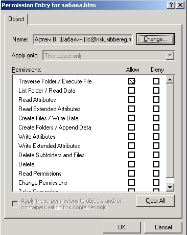 вкладки Security (Безопасность) из диалогового окна свойств, но в этом списке можно устанавливать индивидуальные разрешения.[3]