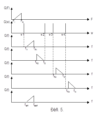 Для расчета и построения спектра сигнала, рис3, (на основе крайних частот спектра) верхней боковой полосы первой ступени МСП с ЧРК воспользуемся выражениями: