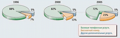 Все эти услуги интегрированы в технологию ISDN и доступны любому абоненту ISDN. Так же существует много дополнительных услуг, которые обрабатываются на уровне ISDN оборудования и не требуют поддержки со станции. 1.4 Преимущества ISDN Прежде чем переходить к описанию общих достоинств ISDN, хочу привести несколько частных примеров. Например, многие руководители имеют специальную кнопку на своих телефонах, с помощью которой они могут мгновенно связаться с секретаршей (нулевое время установления связи). ISDN-телефоны обеспечивают моментальную связь с одним из нескольких наперед заданных абонентов в любой точке мира по нажатию всего одной кнопки. Еще одна возможность - отображение телефонного номера, имени и адреса звонящего на дисплее в момент звонка. В более сложном варианте, когда телефон подключен к компьютеру, монитор ПК может отображать соответствующую запись о звонящем из базы данных. В случае BRI оба B-канала могут быть объединены, например, для обеспечения более быстрого доступа к провайдеру Internet, а при поступлении входящего вызова один канал B тут же освобождается; по завершении разговора канал B автоматически подключается к передаче данных. Общие же достоинства ISDN состоят в следующем. Во-первых, ISDN поднимает по сравнению с модемами порог в 56 Кбит/с для скорости обмена данными между компьютерами по обычной телефонной сети. ISDN позволяет оперировать одновременно несколькими цифровыми каналами по одной телефонной проводке, и таким образом использовать ее для передачи цифрового, а не аналогового сигнала. С помощью протоколов объединения каналов типа BONDING или многоканального PPP базовый интерфейс обмена позволяет достичь скорости передачи несжатых данных в 128 кбит/с. Кроме того, задержка, т. е. время от отправки вызова до установления связи, для линий ISDN меньше в несколько раз. Во-вторых, ранее каждому устройству была необходима отдельная телефонная линия, если они должны были работать одновременно. Например, отдельная линия была нужна для телефона, факса, модема, моста/маршрутизатора и системы видеоконференций. В случае ISDN сигналы от нескольких источников можно комбинировать для передачи по одной линии, причем ISDN предоставляет единый интерфейс для всех источников. В-третьих, вместо отправки вызова по основному каналу абонента в случае обычной телефонной системы ISDN посылает цифровой пакет по отдельному внешнему каналу. С одной стороны, этот сигнал никак не влияет на уже установленные соединения, с другой - установление связи происходит очень быстро. Сигнализация позволяет также определить, кто звонит, а телефонное оборудование ISDN может автоматически принимать решение, куда перенаправить звонок. 1.5. Концепция ISDN Определив в общих чертах сферу применения ISDN и рассмотрев ее основные возможности, перейдем теперь к рассмотрению технологических особенностей одной из самых перспективных телекоммуникационных систем современности. Основные принципы ISDN Как уже говорилось выше, технология ISDN имеет концептуальные отличия от принципов, используемых в аналоговой телефонии. Каковы же эти отличия? Основной отличительной особенностью сети ISDN от обычной аналоговой телефонной сети является то, что ISDN-станции обеспечивают коммутацию цифровых, а не аналоговых, потоков. Следует заметить, что в последнее время появилось много аналоговых АТС, 