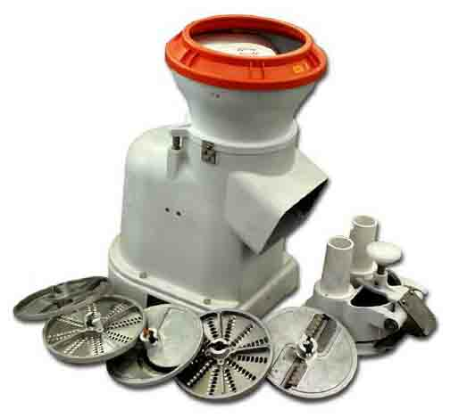 Мал. 3.4.4. Здрібник овочів Гамма-5 з насадками Міксери серії B Міксери серії B (Мал. 3.4.5.) мають гарний зовнішній вигляд. Використовуються для замішування тіста, змішування сипучих, рідких продуктів, кремів. У даних моделях використовується планетарне обертання насадки. Машина працює плавно, надійно. Є три швидкості обертання і декілька насадок, що підбираються для змішування відповідних видів продуктів. Частини машини, що контактують з харчовими продуктами, виготовлені з нержавіючої сталі або мають спеціальне покриття, що відповідає гігієнічним стандартам. Основні параметри і розміри