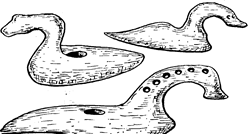 пересекает Океан на ладье, запряжённой водоплавающими птицами — гусями, утками, лебедями. Поэтому наши предки приписывали особую силу оберегам (это слово происходит от глагола "беречь", "оберегать" и обозначает амулет, талисман) в виде утки с головой коня. Они верили, что Бог Солнца поможет им, где