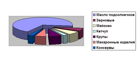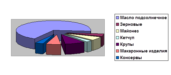 Для наглядности информации изобразим анализ сбыта по различным видам продукции в рисунках 2.3 и 2.4