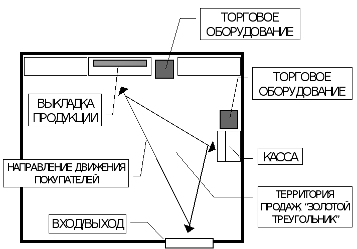 Рисунок 8. Схема планировки типовой торговой точки. Таким образом при выборе наилучшего расположения места продаж следует учитывать следующие факторы: