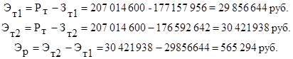 Где Эт - реальный экономический эффект от внедрения проектных мероприятий за расчетный период, руб.; Эт1 - экономический эффект, полученный за расчетный период без внедрения проектных мероприятий, руб.; Эт2 - экономический эффект, полученный за расчетный период после внедрения проектных мероприятий, руб.[2] Соответственно: