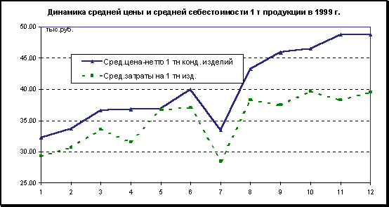Вышеприведенная таблица подтверждает уже сказанное - резко упал объем производства в 1998 году , а в 1999 году наблюдается тенденция роста, хотя загрузка мощностей все еще ниже, чем в 1997 году. Таблица 2.13 Сводная таблица основных технико-экономических показателей