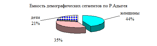 Рисунок 3.12. · Совместимости сегмента с рынком основных конкурентов. В Р.Адыгея не существует сколько-нибудь существенных конкурентов Таким образом, при ориентировании на сегмент людей больных диабетом ЗАО Кондитерская фабрика «Майкопская» может увеличить свою долю рынка в Р.Адыгея на 4,5 %. В Краснодарском крае на 25%. Можно выделить также следующие сегменты рынка. Демографическая сегментация — деление рынка на группы в зависимости от таких характеристик потребителей, как: возраст, пол, семейное положение, жизненный цикл семьи, религия, национальность и раса. -Сегмент женщин от 20-50 лет-(женщины желающие похудеть или заботящиеся о калорийности своей пищи) наладить выпуск диетической продукции низкокалорийного содержания- это карамель, вафли. Емкость рынка составляет:2,8 тыс.тн. в год по Р.Адыгея По Северо-Кавказскому региону-119,7 тыс.т. в год. а)Интенсивность конкуренции В Р. Адыгея конкурентов на рынке диетической продукции нетВ Краснодарском крае: В Республике Адыгея конкурентов на рынке диетической продукции нет. В Краснодарском крае: Конфеты: Воронежская кондитерская фабрика (Воронеж), Красный Октябрь, Кондитерская фабрика Южная звезда, Новгородская Кондитерская фабрика. Вафли: Ростов, но эта продукция не позиционируется как диетическая, ориентированная на сегмент женщин желающих заботящихся о калорийности своей пищи. Охват вышеназванного сегмента принесет фабрике увеличения объемов производства на 15 % в Р.Адыгея и на 30% в Краснодарском крае. -Сегмент дети- В области товарной политики предприятие может выпускать разнообразные шоколадные батончики с различной начинкой (в этой области с 1998 года было выпущено 8 сортов шоколадных батончиков, последний из которых был запущен в производство в апреле 1999 года) и разнообразных леденцовых карамелей. По исследованиям российских учёных именно эта продукция пользуется наибольшим спросом у детей. Емкость рынка составляет:1,34 тыс.тн. в год по Р.Адыгея По Северо-Кавказскому региону-57,12 тыс.т. в год. Социально-экономическая сегментация предполагает деление потребителей по уровню доходов, роду занятия, уровню образования. Выделяется сегмент богатых людей предприятие должно направить свои усилия на производство дорогих шоколадных конфет Емкость рынка составляет:0,8 тыс.тн. в год по Р.Адыгея По Северо-Кавказскому региону-85,4 тыс.т. в год. Сегмент людей среднего класса -необходимо наладить выпуск зефира и карамели по доступным ценам при обеспечении высокого качества. Емкость рынка составляет:2,5 тыс.тн. в год по Р.Адыгея По Северо-Кавказскому региону-100,8 тыс.т. в год.