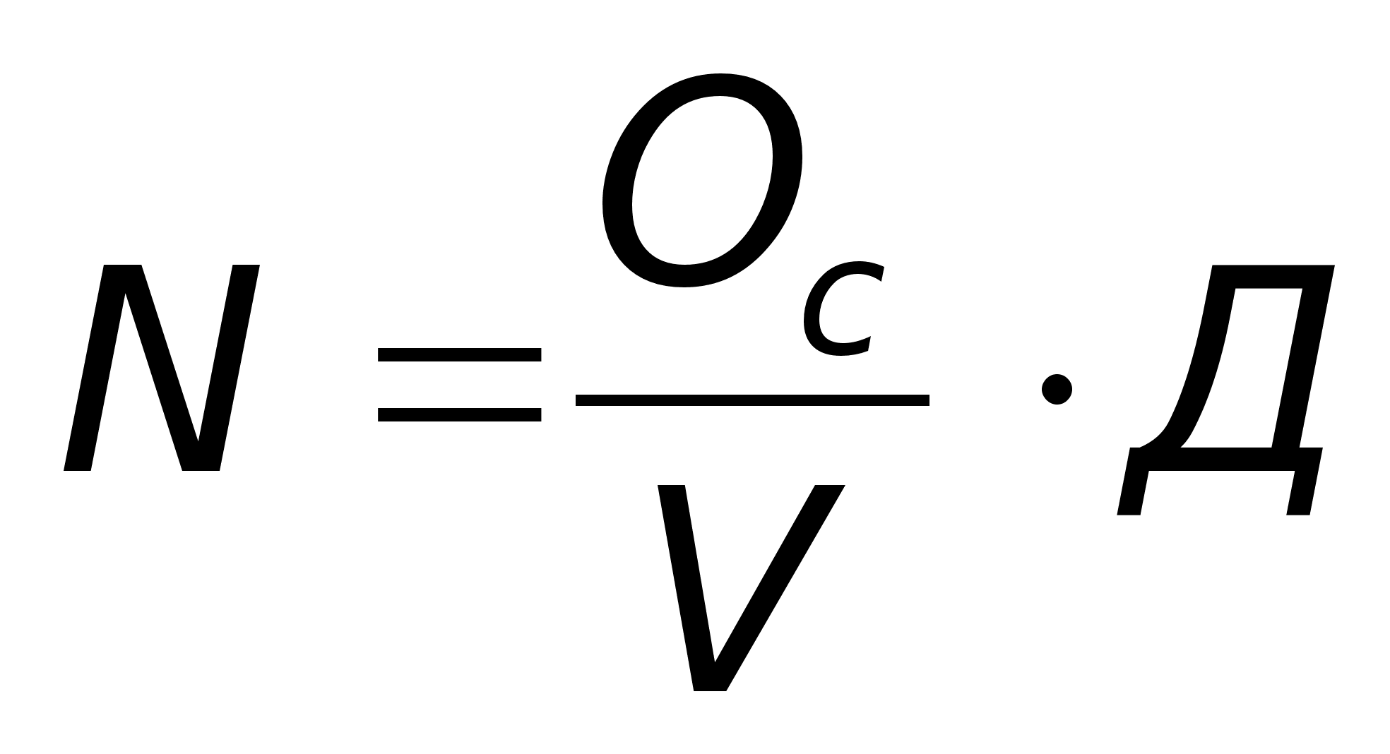 Эффективность использования нематериальных активов определяется аналогичными показателями, то есть фондоотдачи и фондоемкостью материальных активов. Эффективность использования оборотных средств характеризуется их оборачиваемостью, которая исчисляется продолжительностью 1 оборота в днях, или количеством оборотов за расчетный период ( коэффициентом оборачиваемости). Оборачиваемость в днях (N) представляет собой отношение суммы среднего остатка оборотных средств к сумме однодневной выручки за анализируемый период и определяется по формуле: