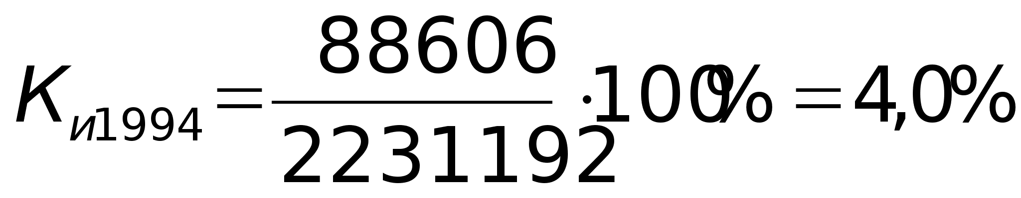 Обобщающим показателем характеризующим использование трудового потенциала является коэффициент использования трудового потенциала (формула 2.15), который представляет собой отношение фактического фонда рабочего времени к табельному фонду рабочего времени в человекоднях. Показатель в 1994 г. равен 91,4%