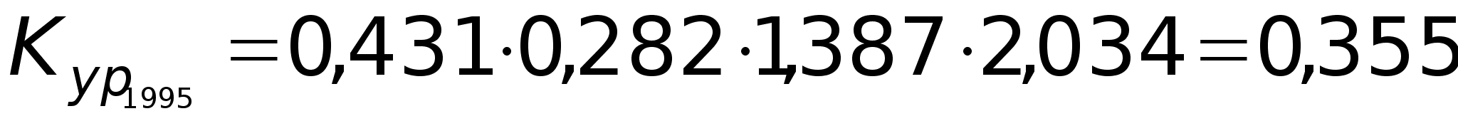 На изменение прибыли так же влияет дополнительный выпуск продукции в результате ускорения оборачиваемости экономического потенциала (см. формулу 2.31). в 1995 г. показатель составил 41.580.958 т. руб.
