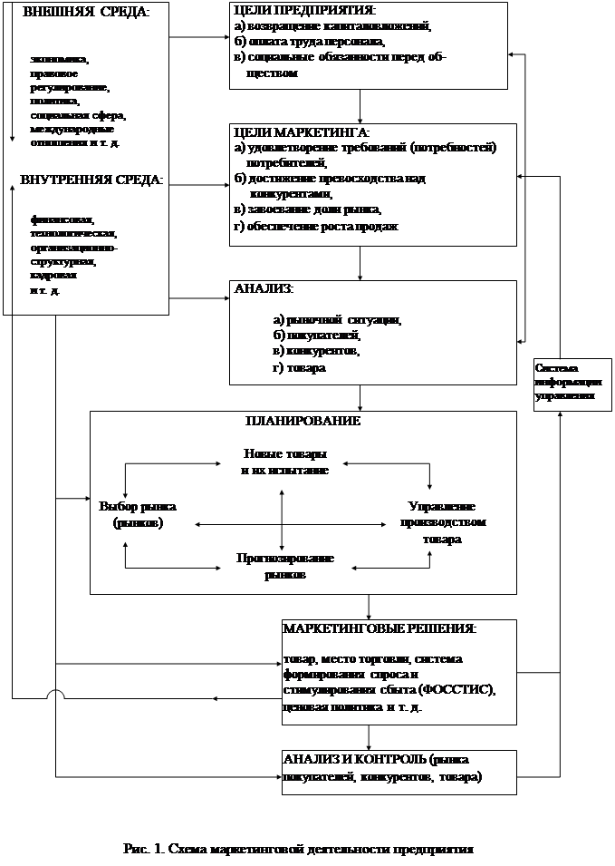 Введение В сегодняшнем сложном мире все мы должны разбираться в маркетинге. Продавая машину, подыскивая работу, собирая средства на благотворительные нужды или пропагандируя идею, мы занимаемся маркетингом. Нам нужно знать, что представляет собой рынок, кто на нем действует, как он функционирует, каковы его запросы. Нам нужно разбираться в маркетинге и нашей роли потребителей, и в нашей роли граждан. Знание маркетинга позволяет нам вести себя более разумно в качестве потребителей, будь то покупка зубной пасты или нового автомобиля. По данной теме написано очень много книг и исследовательских работ, но в данной курсовой работе за основу была взяты книги американских экономистов Ф Котлера "Основы маркетинга" и Дж. Р. Эванса, Б. Бермана "Маркетинг". Предлагаемый материал содержит рассмотрение наиболее общих проблем маркетинга, т. к. объем данной работы не позволяет рассмотреть все указанные аспекты в полном объеме. I. Теоретические аспекты маркетинговых исследований. I.1. Сущность и принципы маркетинга. МАРКЕТИНГ (от английского market - рынок) - комплексная система организации производства и сбыта продукции, ориентированная на удовлетворение потребностей конкретных потребителей и получение прибыли на основе исследование и прогнозирования рынка, изучения внутренней и внешней среды предприятия-экспортера, разработки стратегии и тактики поведения на рынке с помощью маркетинговых программ. В этих программах заложены мероприятия по улучшению товара и его ассортимента, изучению покупателей, конкурентов и конкуренции, по обеспечению ценовой политики, формированию спроса, стимулированию сбыта и рекламе, оптимизации каналов товародвижения и организации сбыта, организации технического сервиса и расширения ассортимента представляемых сервисных услуг. Маркетинг как порождение рыночной экономики является в определенном смысле философией производства, полностью (от научно-исследовательских и проектно-конструкторских работ до сбыта и сервиса) подчиненной условиям и требованиям рынка, находящимся в постоянном динамическом развитии под воздействием широкого спектра экономических, политических, научно-технических и социальных факторов. Предприятия-производители и экспортеры рассматривают маркетинг как средство для достижения целей, фиксированных на данный период по каждому конкретному рынку и его сегментам, с наивысшей экономической эффективностью. Однако это становится реальным тогда, когда производитель располагает возможностью систематически корректировать свои научно-технические, производственные и сбытовые планы в соответствии с изменениями рыночной конъюнктуры, маневрировать собственными материальными и интеллектуальными ресурсами, чтобы обеспечить необходимую гибкость в решении стратегических и тактических задач, исходя из результатов маркетинговых исследований. При этих условиях маркетинг становится фундаментом для долгосрочного и оперативного планирования производственно-коммерческой деятельности предприятия, составления экспортных программ производства, организации научно-технической, технологической, инвестиционной и производственно-сбытовой работы коллектива предприятия, а управление маркетингом - важнейшим элементом системы управления предприятием. Маркетинговая деятельность должна