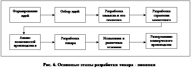 Разработка нового товара начинается с поиска идей для новинки. Поиски эти должны вестись систематически, а не от случая к случаю. В противном случае фирма может найти десятки идей, но большинство из них не подойдет с точки зрения специфики ее деятельности. Цель деятельности по формированию идей заключается в выработке как можно большего их числа. Цель последующих этапов - сократить это число. Первым шагом на этом пути является отбор идей. Цель отбора - как можно раньше выявить и отсеять непригодные идеи. Теперь уцелевшие после отбора идеи надо превратить в замыслы товаров. Важно провести четкое различие между идеей, замыслом и образом товара. Идея товара - это общее представление о возможном товаре, который фирма могла бы, по ее мнению, предложить рынку. Замысел товара - проработанный вариант идеи, выраженный значимыми для потребителя понятиями. Образ товара - конкретное представление, сложившееся у потребителей о реально существующем или потенциальном товаре. Проверка замысла предусматривает опробование его на соответствующей группе целевых потребителей, которым представляют проработанные варианты всех замыслов. Ответы потребителей помогут фирме определить, какой вариант замысла обладает наибольшей притягательной силой. Изложение стратегии маркетинга состоит из трех частей. В первой части дается описание величины, структуры и поведения целевого рынка, предполагаемого позиционирования товара, а также показателей объема продаж, доли рынка и прибыли на несколько ближайших лет. Во второй части изложения стратегии маркетинга даются общие сведения о предполагаемой цене товара, об общем подходе к его распределению и смете расходов на маркетинг в течение первого года. В третьей части содержатся перспективные цели по показателям сбыта и прибыли, а также долговременный стратегический подход к формированию комплекса маркетинга. Приняв решение относительно замысла товара, руководство может приступить к оценке деловой привлекательности предложения. Для этого необходимо проанализировать намеченные контрольные показатели продаж, издержек и прибыли, чтобы удостовериться в их соответствии целям фирмы. Если результаты анализа окажутся удовлетворительными, можно приступать к этапу непосредственной разработки товара. Отдел исследования разработок создает один или несколько вариантов физического воплощения товарного замысла в надежде получить прототип, удовлетворяющий следующим критериям: 1) потребители воспринимают его как носителя всех основных свойств, изложенных в описании замысла товара, 2) он безопасен и надежно работает при обычном использовании и в обычных условиях, 3) его себестоимость не выходит за рамки запланированных сметных издержек производства. Если товар успешно прошел функциональные испытания и проверку на потребителях, фирма выпускает небольшую партию товара для испытания в рыночных условиях. На этом этапе товар и маркетинговая программа испытываются в обстановке, более приближенной к реальному использованию. Методы испытания в рыночных условиях варьируются в зависимости от вида товара. Фирме, проводящей испытания финансовых товаров широкого потребления, наверняка захочется получить примерные данные о том, когда и как часто потребители приобретают ее товары. На основе этих оценочных данн