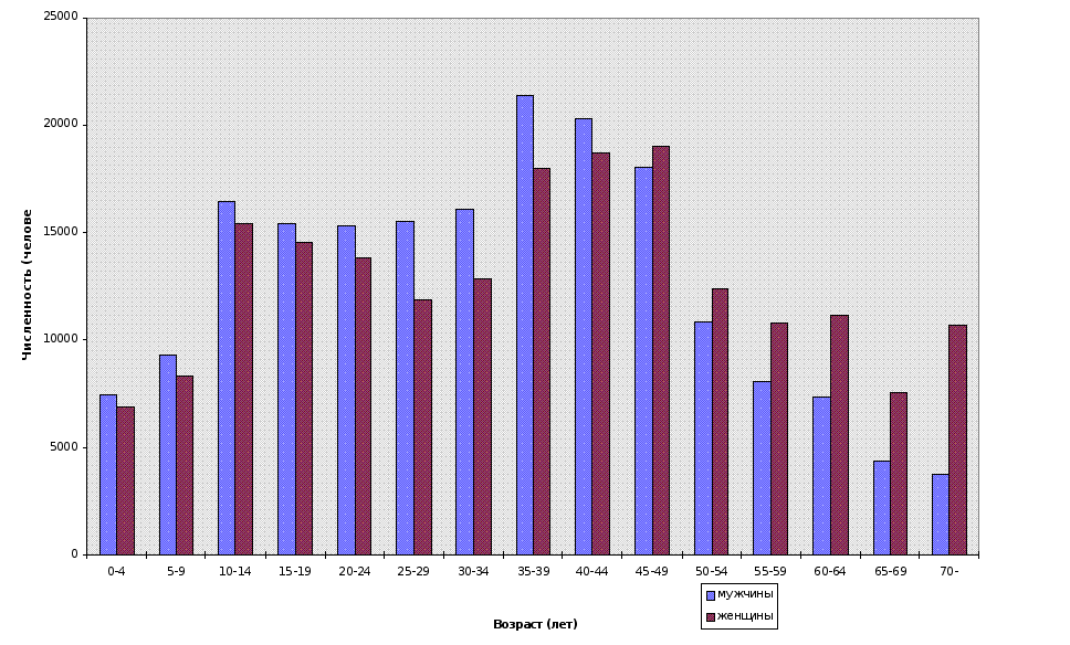 Половозрастной состав населения г. Мурманска приведен в таблице 2.2 (диаграмму см. в приложении 6). Таблица 2.2. Население г. Мурманска по полу и возрасту (человек) за 1998-1999гг.