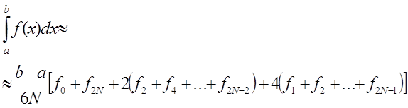 Чтобы не использовать дробных индексов можно обозначить xi =a+0,5hi, fi =f(xi ), i=1,2,…,2N, hN=b-a и записать формулу Симпсона в виде
