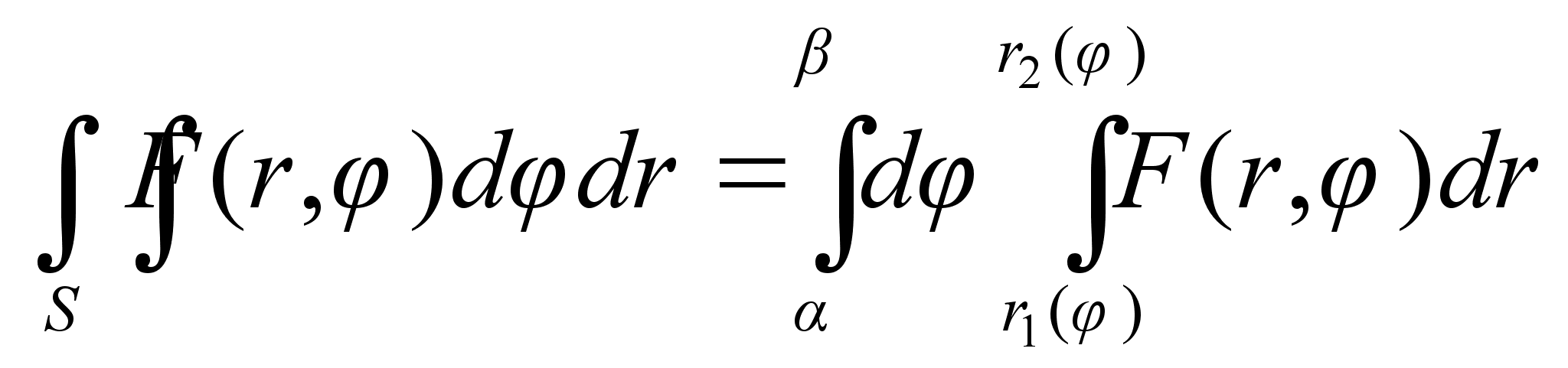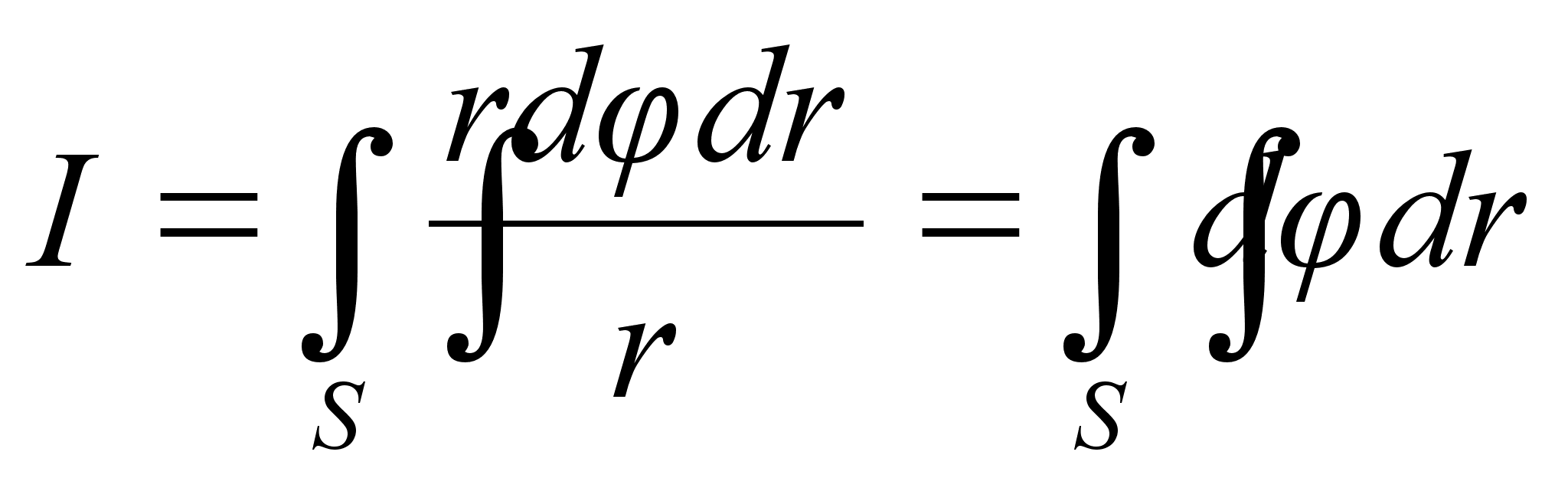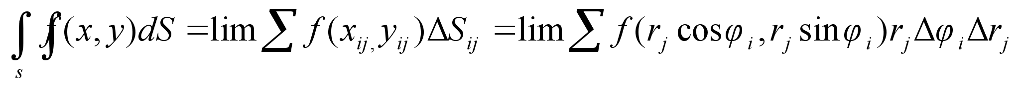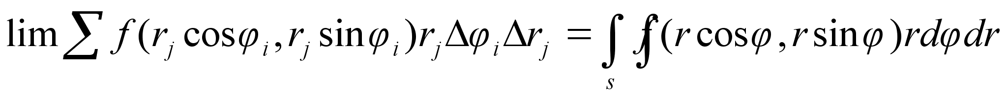 п (4) где d - максимальный диаметр ячеек Sij и сумма распространена на все ячейки указанного выше вида, целиком содержащиеся в области S. С другой стороны, величины i и rj суть числа и их можно рассматривать как прямоугольные декартовые координаты некоторых точек плоскости Or. Таким образом, сумма (4) является интегральной суммой для функции f(r cos, r sin)r,