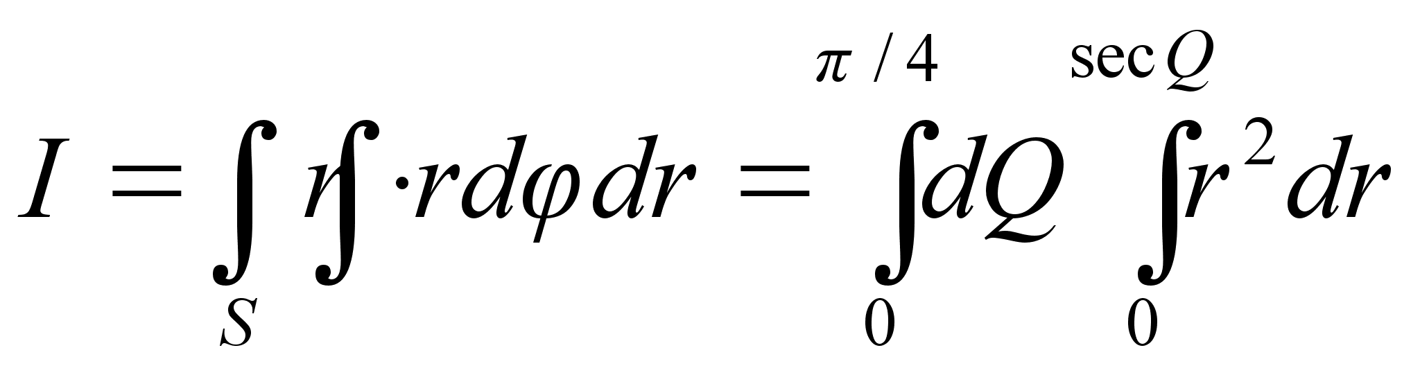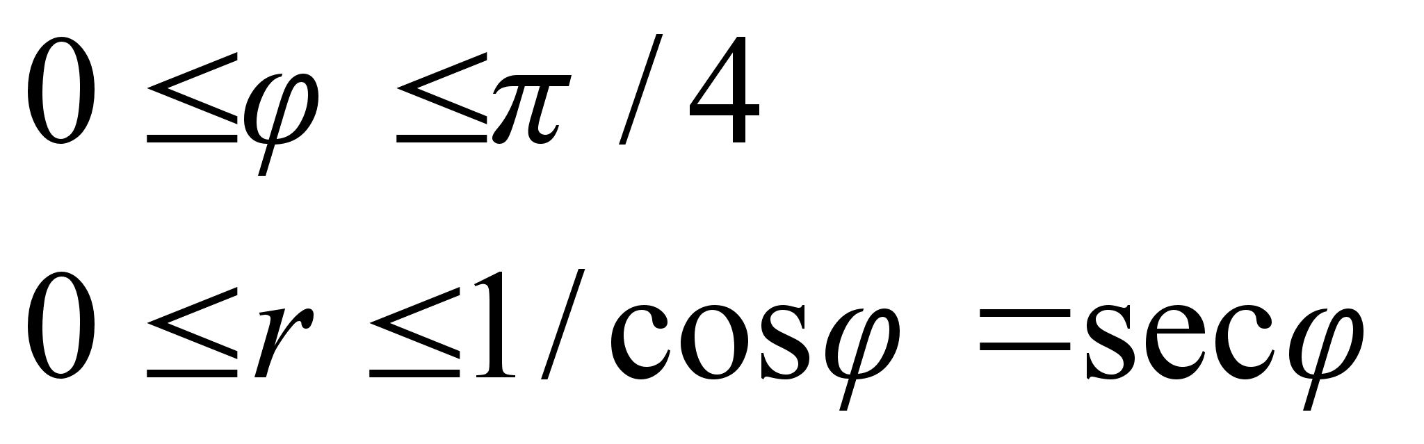 В (9) перейти к полярным координатам. Область интегрирования здесь есть треугольник S, ограниченный прямыми y=0, y=x, x=1 (рис 4). В полярных координатах уравнения этих прямых записываются следующим образом: =0, =/4, r cos=1 и, следовательно, область S определяется неравенствами