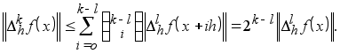 Лемма доказана. Определение 5. Если измеримая периода (b-a ) функция f (x )ÎLq (Lq -класс всех вещественных измеримых на [a,b ] функции f (x )), то под её интегральным модулем гладкости порядка k ³1 понимают функцию