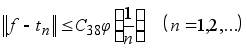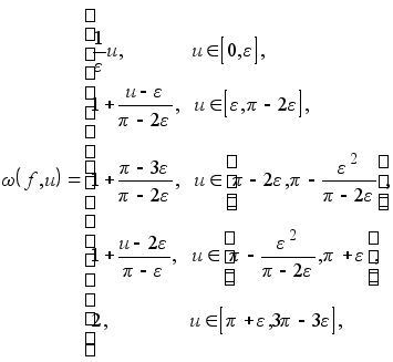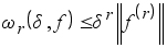 где С8 -какая-нибудь положительная постоянная, которая не зависит от d и которая, вообще говоря, является различной для разных функций. Этот класс обозначается H a или Lip a . Определение 2. Обозначим при фиксированном натуральном r через W(r) L класс функций f , которая имеет абсолютно непрерывные производные до (r- 1) порядка и у которой r -я производная принадлежит классу L . Определение 3. Для непрерывной на [a,b ] функции f (x )назовём модулем непрерывности первого порядка или же просто модулем непрерывности функцию w (d )= w (f; d ), определённую на [0, b-a ] при помощи следующего равенства: