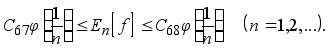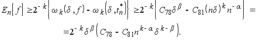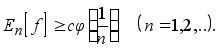 С.Н.Бернштейн, Д.Джексон и Ш.Валле-Пуссен получили зависимости между оценками сверху для En [f ] и дифференциальными свойствами f . Некоторые дополнения к их теоремам доказаны А.Зигмундом. нам предстоит, поэтому, получить зависимости между дифференциальными свойствами f и оценками En [f ] снизу. Впервые задачами типа 1 занимался С.Н.Бернштейн. А именно, им получено ассимптотическое равенство: