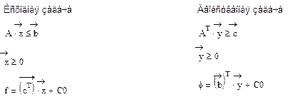 max(f)-? min(φ)-? Из данного примера легко просматривается взаимосвязь между исходной и двойственной задачами. Введя в рассмотрение следующие элементы: