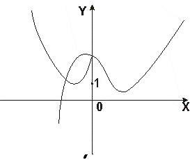 Пример 2. Построить график функции y=( x2 -1)/x. Решение: 1. Функция не определена только в точке х=0, т.е. D(f)=(- ; 0) È (0; + ) . 2. Множество D(f) является симметричным; кроме того f(-х)=((-х) 2 -1)/-х=-( x2 -1)/-х=-f(х). Значит, y=f(x) – нечетная функция. Поэтому график симметричен относительно начала координат и для дальнейшего исследования можно ограничится промежутком (0; + ), что мы и сделаем. 3. Функция непериодическая. 4. Найдем точки пересечения графика с положительным лучом оси Ох . Из уравнения ( x2 -1)/x=0 находим x=1 (корень х=-1 пока не принемаем во внимание). Итак, точка пересичения с осью Ох – точку (1; 0). С осью Оу график не пересекается, т.к. точка х=0 не принадлежит к области определения функции: 0 D(f). 5. Находим промежутки знакопостоянства: (0; 1) и (1; + ). В первом из них f(x)<0, во втором f(x)>0/ На рисунке представлена геометрическая иллюстрация тех сведений о графике, которыми мы располагаем к настоящему моменту. 6. Изучим поведение функции вблизи границ области определения, т.е. вблизи точки ноль и при х®+ . Если х® 0 ( напомним, что мы рассматриваем случай где х>0), то (x2 -1)/x ® . Если же х® + , то ( x2 -1)/x=х-1/х ®+ . Прямая х=0 является вертикальной асимптотой. Далее, т.к. степень числителя выражается (x2 -1)/x на единицу больше степени знаменателя, то должна существовать и наклонная асимптота. В самом деле, поскольку (x2 -1)/x=х-1/х и 1/х стремятся к нулю при х® + , наклонной асимптотой служит прямая у=х. 7. Исследуем функцию на экстремум; имеем y’=(( x2 -1)/x )’=([-1/x)’=1+1/ x2 . Замечаем, что у’>0при любых х. Значит на луче (0; + ) функция возрастает и экстремумов не имеет. 8. Составим таблицу значения функции: