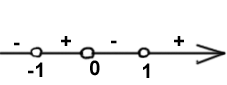 y’=4 x3 -4x=4x(x-1)(x+1) Прировняв производную нулю, находим три корня: 0, 1, -1. Эти точки разбивают числовую прямую на промежутки (- ; -1), (-1;0), (0;1), (1; + ). Если х>1, то у'>0, а в остальных промежутках знаки чередуются справа на лево, смотри рисунок. Составим таблицу: