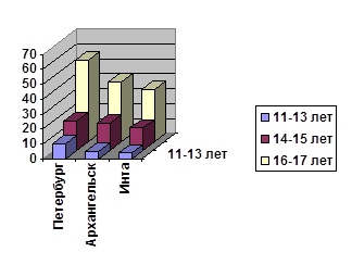 Рис. 1.Частота употребления школьниками спиртных напитков в семье (на 100 обследуемых) Исследование показало, что число девочек 16-17 лет, положительно оценивающих употребление алкогольных напитков по праздникам, превосходило соответствующие показатели у мальчиков, их сверстников. Таким образом, алкогольные обычаи микросреды во многом определяют алкогольные установки детей, их оценки пьянства окружающих, отношение к возможности собственной алкоголизации и ее динамику. Они являются первым и наиболее важным звеном в развитии алкоголизации у подростков, основой "социальной толерантности" к пьянству. Анализ результатов исследований алкоголизации молодежи показывает, что уровень потребления спиртного выше в. среде подростков, состоящих на учете в милиции, имеющих аномалии характера, и детей из семей алкоголиков. Факт знакомства детей со спиртными напитками, конечно, не может быть критерием оценки степени алкоголизации. Гораздо продуктивнее оценивать стиль алкоголизации – совокупность алкогольных установок индивида, определяющих соответствующую форму потребления спиртного и опьянения. Задачей дальнейших социально-психологических исследований будет разработка системы методов вероятностного прогнозирования алкоголизации для тех или иных типов подростков группы риска. СРАВНИТЕЛЬНЫЙ АНАЛИЗ РАСПРОСТРАНЕННОСТИ И ХАРАКТЕРА РАННЕЙ АЛКОГОЛИЗАЦИИ Алкоголизация подрастающего поколения большинством исследователей рассматривается как существенный индикатор неблагополучия микросоциальной среды. Этим и определяется постоянный интерес к изучению проблемы распространенности и характера ранней алкоголизации. К ранней алкоголизации относится знакомство с опьяняющими дозами алкоголя в возрасте до 16 лет. О раннем (подростковом) алкоголизме следует говорить при появлении его первых признаков в возрасте до 18 лет. При анализе алкоголизации несовершеннолетних мы исходили из важного в методологическом плане положения о том, что употребление спиртных напитков подростками необходимо рассматривать как одну из форм нарушения поведения (Личко, 1977). Это требует более широкого и глубокого подхода к рассматриваемой проблеме, не ограничивающегося рамками социальной и клинической наркологии. В таблице 1 приводится качественный состав спиртных напитков, употребляемых молодежью. Как видно из таблицы, мальчики чаще девочек употребляют основные виды спиртных напитков, причем с возрастанием их крепости эта разница становится существенной. Среди городских школьников распространено потребление преимущественно слабых алкогольных напитков – пива, вина, учащиеся же сельских школ более знакомы со вкусами крепких спиртных напитков. В 20-30-е гг. можно было встретить достаточно широкое употребление школьниками самогона: в 1,0 – 32,0%, у мальчиков и 0,9 – 12% у девочек. С возрастом увеличивалась частота употребления водки. Практически во всех социально-гигиенических и клинико-социальных исследованиях алкоголизации молодежи использовался метод опроса в различных модификациях – от заочной анкеты до интервью по телефону и клинического интервью. Наиболее трудносопоставимы между собой данные о распространенности и частоте употребления алкогольных напитков среди молодежи, так как авторы не только различных стран, но даже одной и той же стран