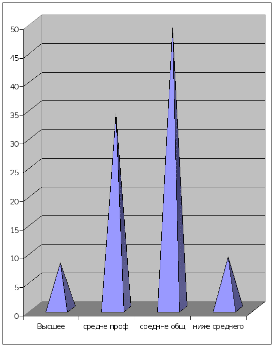 высшее - 8% среднее профессиональное - 34% среднее общее - 49% ниже среднего - 9% (рис.5.4.4)