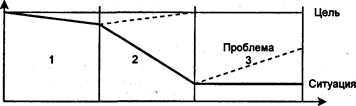 Рис.3 Альтернативы УР Каждая процедура должна быть обозначена следующими параметрами: время, персонал, ресурсы, финансы, критерии оценки. Основной критерий для формирования УР — наличие недопустимой проблемы в сферах стратегического планирования, управления персоналом, управленческого консультирования, управления управленческой деятельностью, управления производством и обслуживающей деятельностью, внешних коммуникаций. УР можно формировать на трех стадиях развития проблемы (рис.4): • в начале развития (область 1), когда величина проблемы еще не внушает опасений. Решение будет действовать по упреждению; • в период устойчивого опасного развития (область 2), когда величина проблемы оказывает существенное негативное влияние на управленческую деятельность. Решение будет действовать с некоторым запозданием от негативных результатов проблемы; • в период стабилизации (область 3), когда всем станут очевидны ее размеры и опасное действие. Решение будет действовать в режиме реального времени. Значение параметров