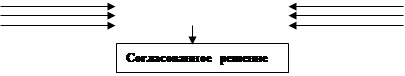 Как видно по таблице, профессиональные интересы участников совещаний существенно расходятся. Этим объясняются многочисленные случаи негативных последствий таких совещаний, проявляющиеся в необоснованных нервных напряжениях, давлении на участников. Решения, принимаемые на таких совещаниях, не всегда были эффективными. Качественным развитием методики проведения деловых совещаний стало внедрение в процесс разработки УР интеллектуальной вставки в виде компьютерной модели организации. Эта модель представляет собой набор: • справочных данных (например, полные данные о потенциальных поставщиках и их продукции); • имитационной модели компании; • методик экономического расчета и прогнозирования; • информации о решениях в аналогичных ситуациях в других организациях и реальных полученных при этом результатах; • законодательных актов и др. В результате совещание резко меняет эмоциональную окраску, становясь во многих отношениях позитивным и более результативным (рис. 11.).