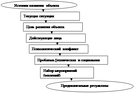 Рис12. Схема осуществления эвристических методов3.6. Метод сценариев Типовой вид сценария. Метод сценариев представляет собой набор прогнозов по каждому рассматриваемому решению, его реализации, а также возможным положительным и отрицательным последствиям. Сценарии по каждому решению обычно фиксируются на бумаге, в памяти компьютера, на магнитной ленте. Они напоминают литературные сценарии с прологом, основной частью и эпилогом. Сценарии всех спектаклей по сути также представляют прогнозы решений необычных или классических жизненных проблем, при этом зрители играют роль арбитров. Спектакли с плохими вариантами решений являются провальными и их обычно не спасает талантливая игра актеров. Сценарий для УР. При разработке, выборе или реализации УР метод сценариев выполняется следующим образом (рис. 13.): • руководитель подразделения составляет подробное описание задания: цели, существующую ситуацию и проблему; • одному из опытных работников поручается разработать варианты решения проблемы; • специалисту, обладающему еще и литературными способностями, дается задание составить сценарий возможного прохождения решения и предполагаемых результатов, а также реакций на эти результаты заинтересованных специалистов; I • текст сценария рассылается всем работникам, которые на разных стадиях должны принять участие в разработке и реализации решения; • созывается совещание по обсуждению сценария. Возможны три варианта результатов обсуждения: полное одобрение сценария и утверждение технологии разработки и реализации решения, внесение в него коррективов, утверждение технологии разработки и реализации решения, очевидное несогласие и переделка сценария; составление окончательного сценария для ввода в базу данных компании. Рис. 13. Структура содержательной части сценария