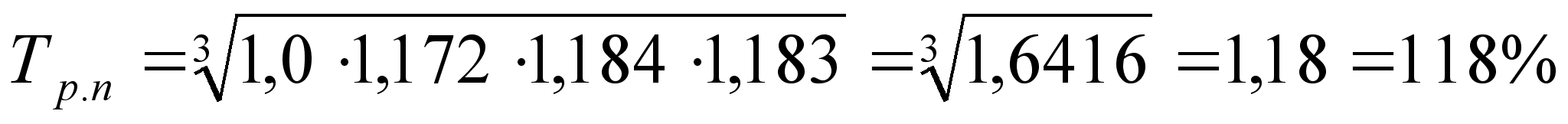 Среднегодовой темп роста (прироста) выпуска продукции: