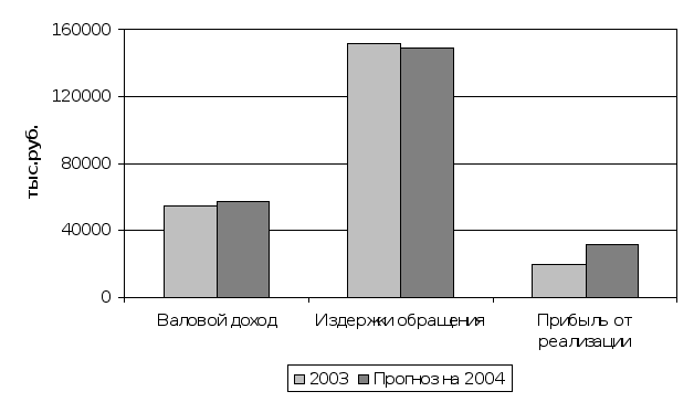 Рисунок 3.3 – Прогнозирование прибыли от реализации на 2004 г.