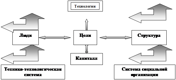Рис.1 [3] Другим признаком организации является её обособленность, выражающаяся в замкнутости внутренних процессов, которая обеспечивает наличие границ, отделяющих организацию от внешнего окружения. Эти границы могут быть «прозрачными» или «непрозрачными», материальными в виде стен и заборов или «идеальными», основывающимися на различного рода предписаниях и запретах в отношении тех или иных действий. Третьим признаком организации можно считать осуществление её деятельности на основе принципа саморегулирования, который предполагает возможность в определенных рамках самостоятельно решать те или иные вопросы организациооной жизни и по-своему с учетом конкретных обстоятельств реализовывать внешние команды. Такое саморегулирование осуществляется с помощью внутриорганизационного центра, координирующего деятельность членов организации и обеспечивающего их единство. Наличие этого центра является четвертым признаком организации. Также следует отметить, что в крупной организации центров может быть несколько, но один из них всегда будет выполнять функции главного, а остальные—перифирийных. Полицентризм делает организацию более гибкой, а следовательно и устойчивой. В качестве еще одного признака организации следует назвать организациооную культуру, представляющую собой совокупность установившихся традиций, символов, ценностей, верований, которые во многом определяют характер взаимоотношений и направленность поведения людей. Организационная культура включает как субъективные, так и объективные элементы. К первым относятся, например, различного рода ритуалы, мифы, связанные с историей организации и жизнью её замечательных членов, принятые нормы общения. Вторые в основном характеризуют материальную сторону жизни и деятельности организации. Это её символика, цвета, удобство и оформление интерьеров, внешкий вид зданий и т.п. Сплав субъективных и объективных элементов формирует основу культуры управления, в которую можно включить стиль руководства, способы решения проблем, характер поведения менеджеров. Организационная культура является одним из важнейших элементов, создающих внутреннюю среду организации (рис.2)—совокупность форм и процессов, придающих последнее конкретное, присущее только ей лица к другим её элементам можно отнести разделение труда, используемые технологии, организационную структуру, систему коммуникаций и обмена информацией, поведение сотрудников и пр.