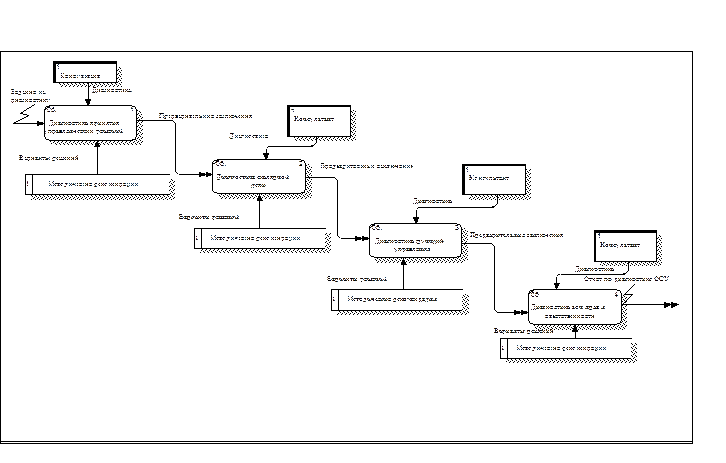 Ниже представлена диаграмма DFD описания обмена данными на стадии диагностики ОСУ. Рис.9 Модель описания процесса обмена данными при диагностике ОСУ 2.9. Выводы по второй части Представленный выше стандарт уже достаточно давно используется во всем мире практиками – консультантами в своих проектах по реинжинирингу бизнес-процессов. Стандарт IDEF уже давно прошел проверку временем на профессиональную пригодность. Завершая вторую часть статьи о стандарте IDEF, хотелось бы еще раз отметить его основные свойства.