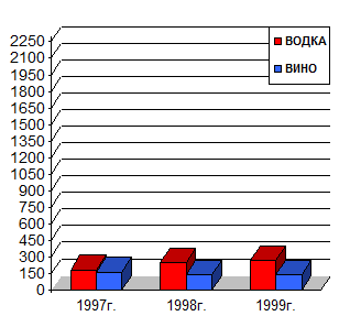 На основании вышеупомянутого, следует вывод, что водочные изделия, производимые ОАО ВВЗ “Майкопский” обладает высокой конкурентоспособностью. 3.4. Анализ платежеспособного спроса в республике По данным Госкомстата в республике в течение последних 3-х лет наблюдаются следующие объемы продаж алкогольной продукции через сеть розничной торговли: Таблица 3.5. Динамика изменения объемов продаж на территории республики