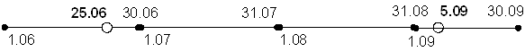 А=12+30+15+-1=56 (из360); Б=12+28+15-1=54 (из365); В=12+28+15-1=54 (из 360). Германская схема (А) наиболее привлекательна для вкладчика (56 дней процента). 2) С 25.06 до 05.09